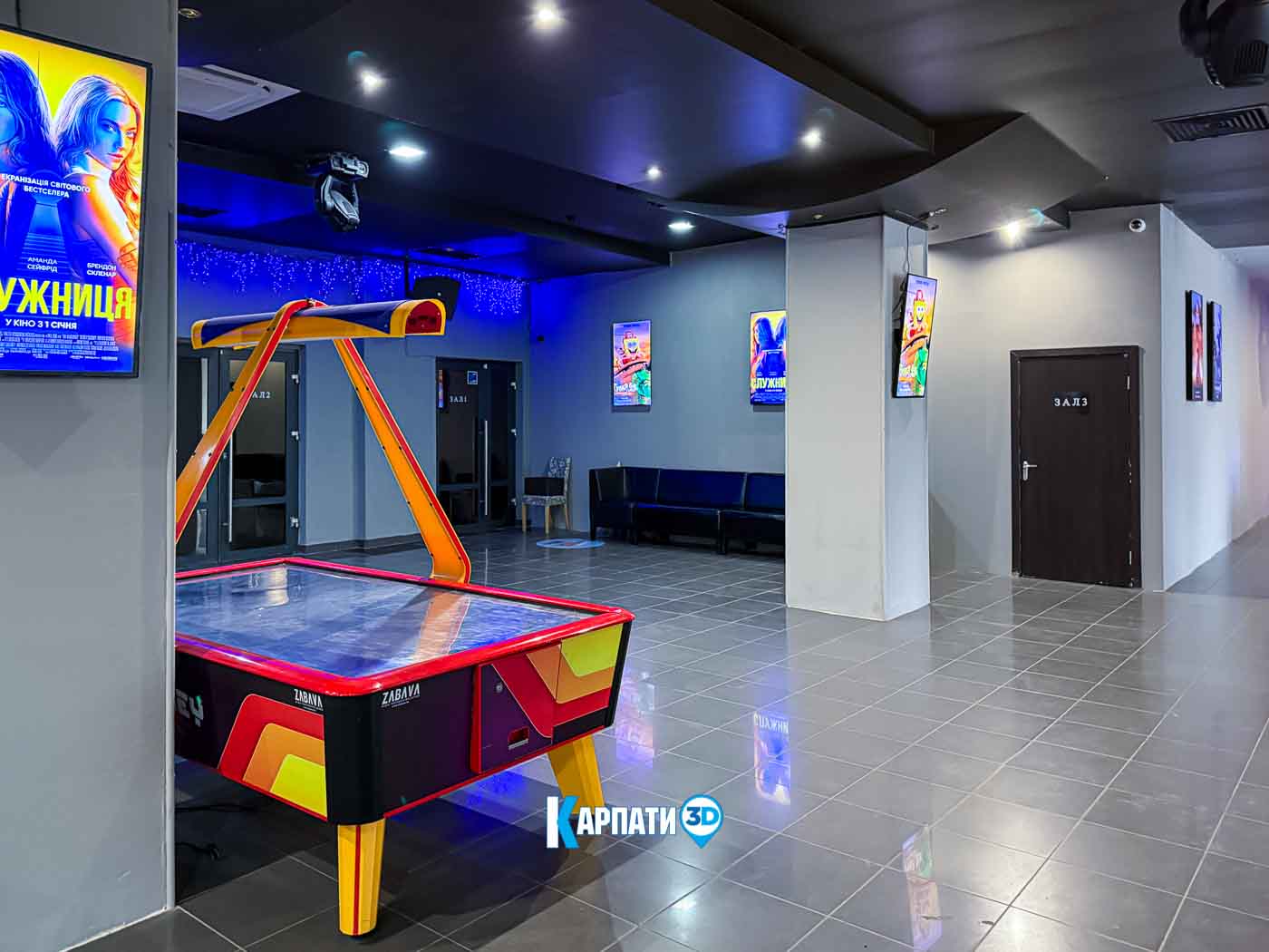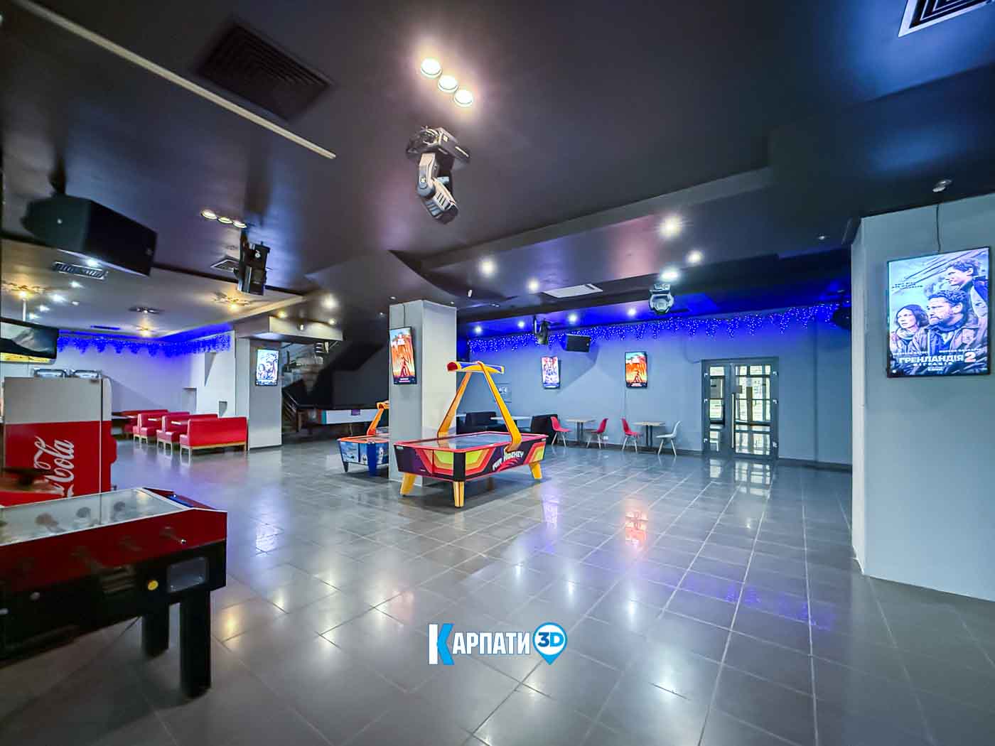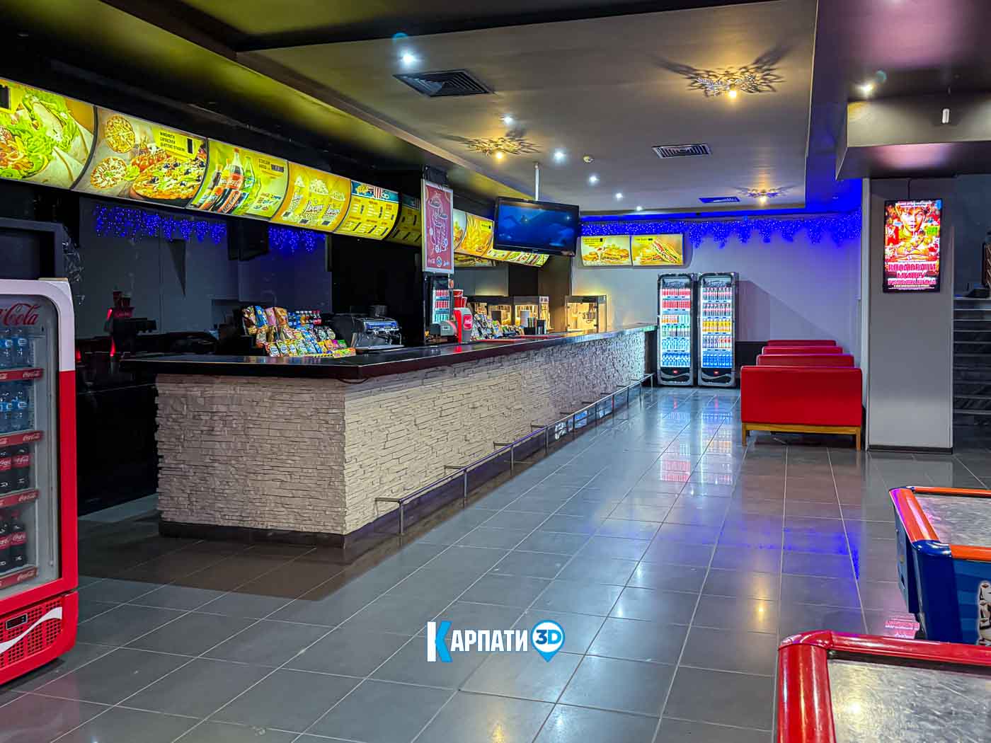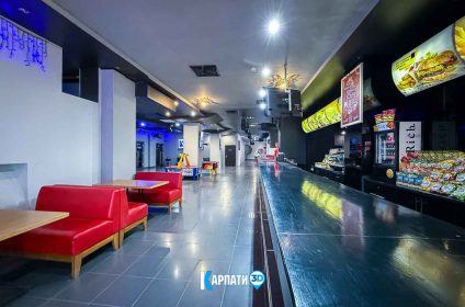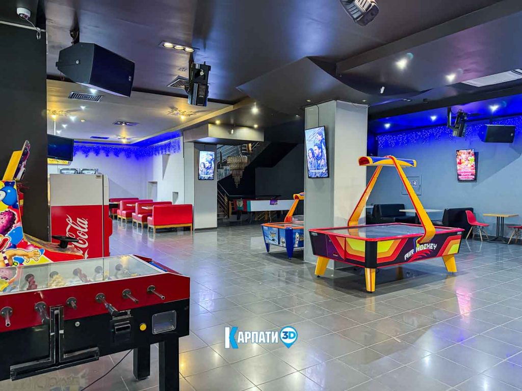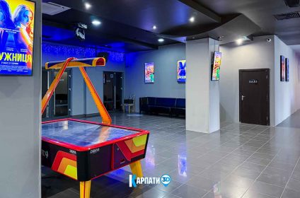 У просторому фоє працює кінобар, де гості можуть купити улюблений попкорн, горішки, чіпси, прохолодні напої, різні види кави, смачні десерти та комфортно зачекати початку показу 🍿☕. Для дітей передбачено багато сучасних ігрових автоматів — яскравих, цікавих і захопливих.