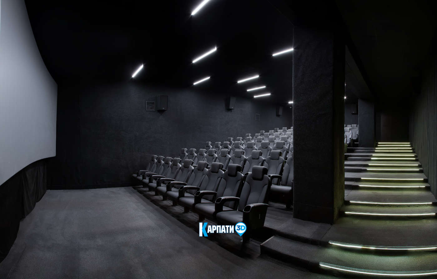 Головна гордість закладу — перший, основний зал, що вміщує майже 300 глядачів. Це найбільший кінозал в Ужгороді та на всьому Закарпатті. Велетенський екран розміром 12,5 × 6,5 метра створює потужний ефект присутності та занурює у світ великого кіно з перших секунд перегляду 🎥.