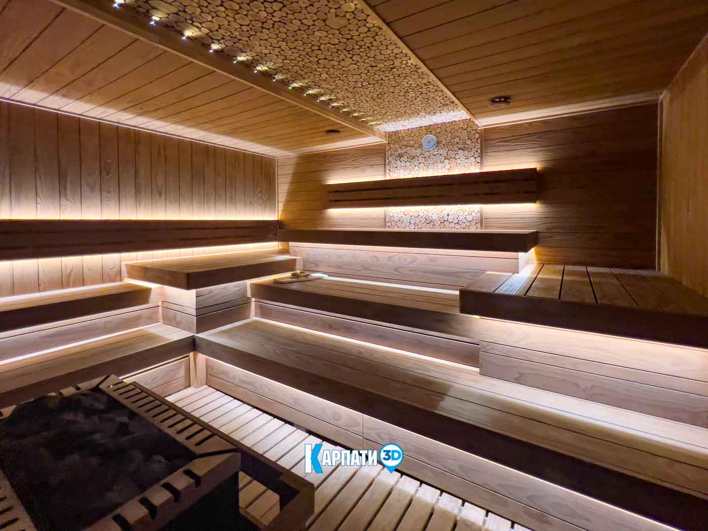 - SPA-зона та критий басейн (джакузі, арома-сауна, фінська сауна, хамам, соляна кімната);