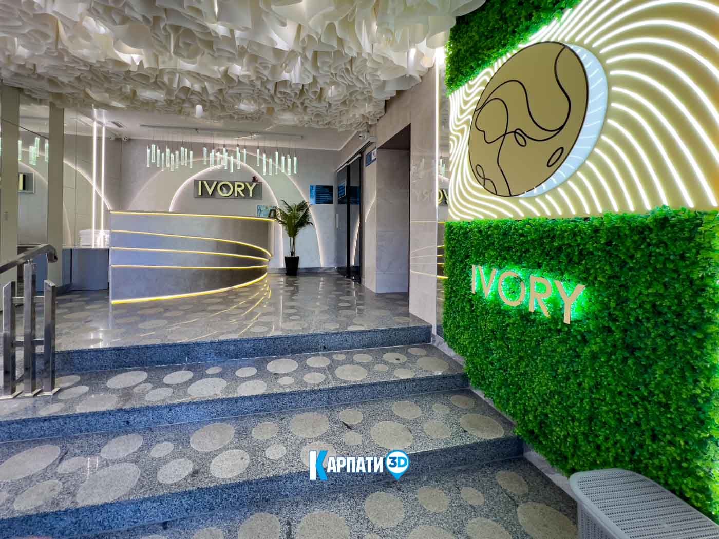 Назва IVORY перекладається як “слонова кістка”, і саме слон став символом комплексу. Власник зібрав одну з найбільших колекцій слоників в Україні — понад 2000 фігурок з різних матеріалів і країн світу.