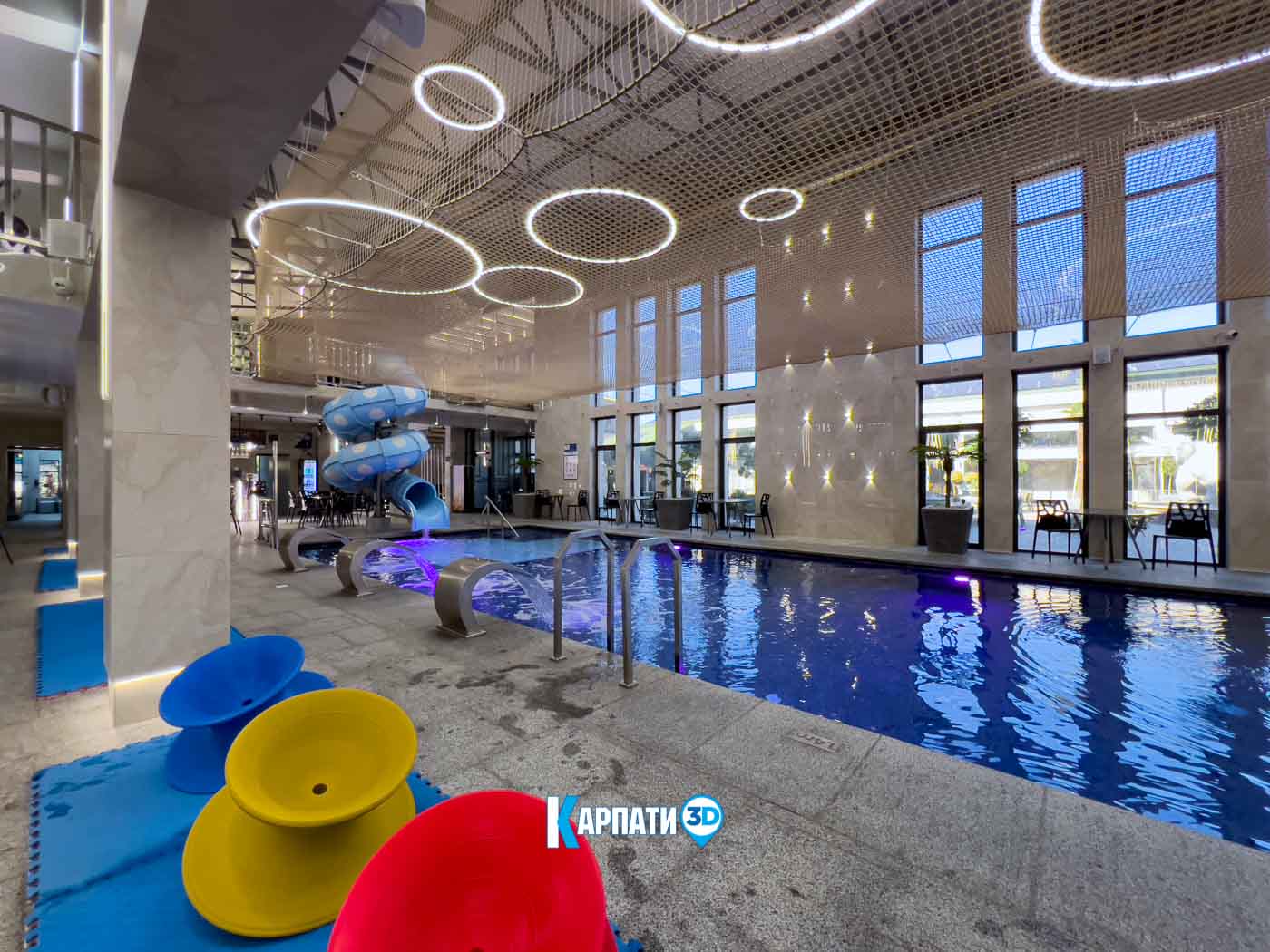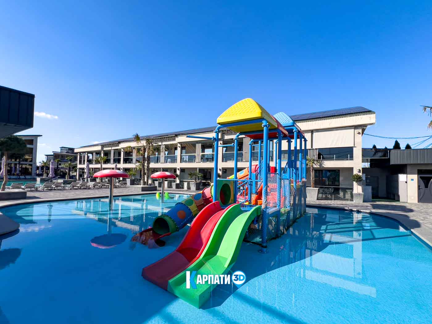 Для маленьких гостей облаштовано дитячий басейн, де безпечно і весело проводити час під наглядом батьків.